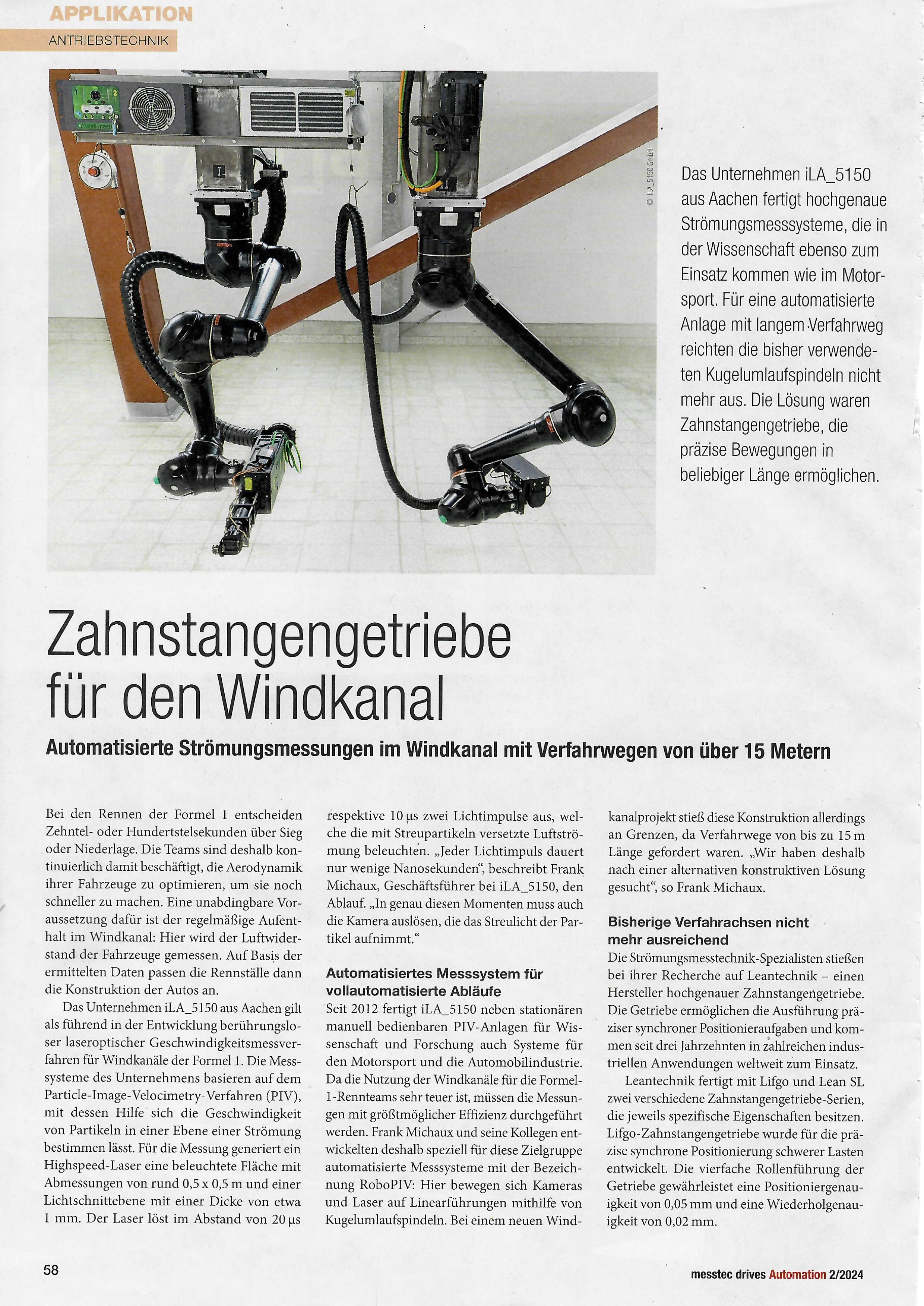 Zahnstangengetriebe für den Windkanal